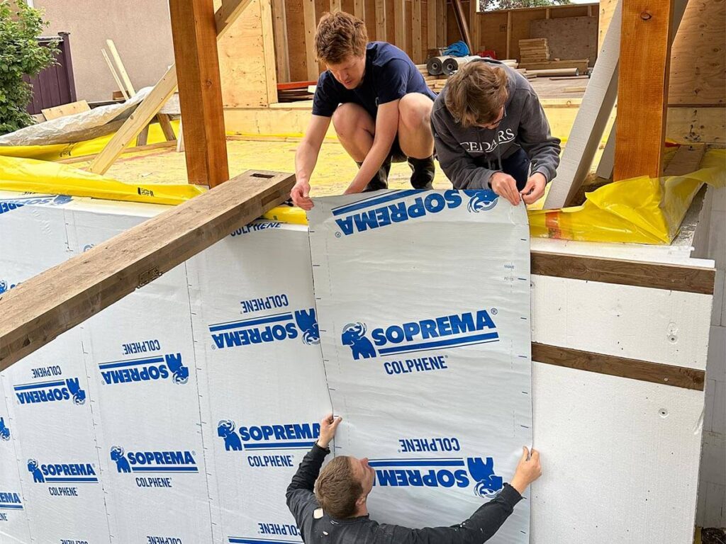 After the new windows and doors were put in place, draft-proofing and insulation followed in the autumn of 2023. All of the insulation and draft-proofing work was done from the exterior while the family was still living inside their home. The times when construction came into the home were when electrical needed moving and when new openings and supports for windows were being made.